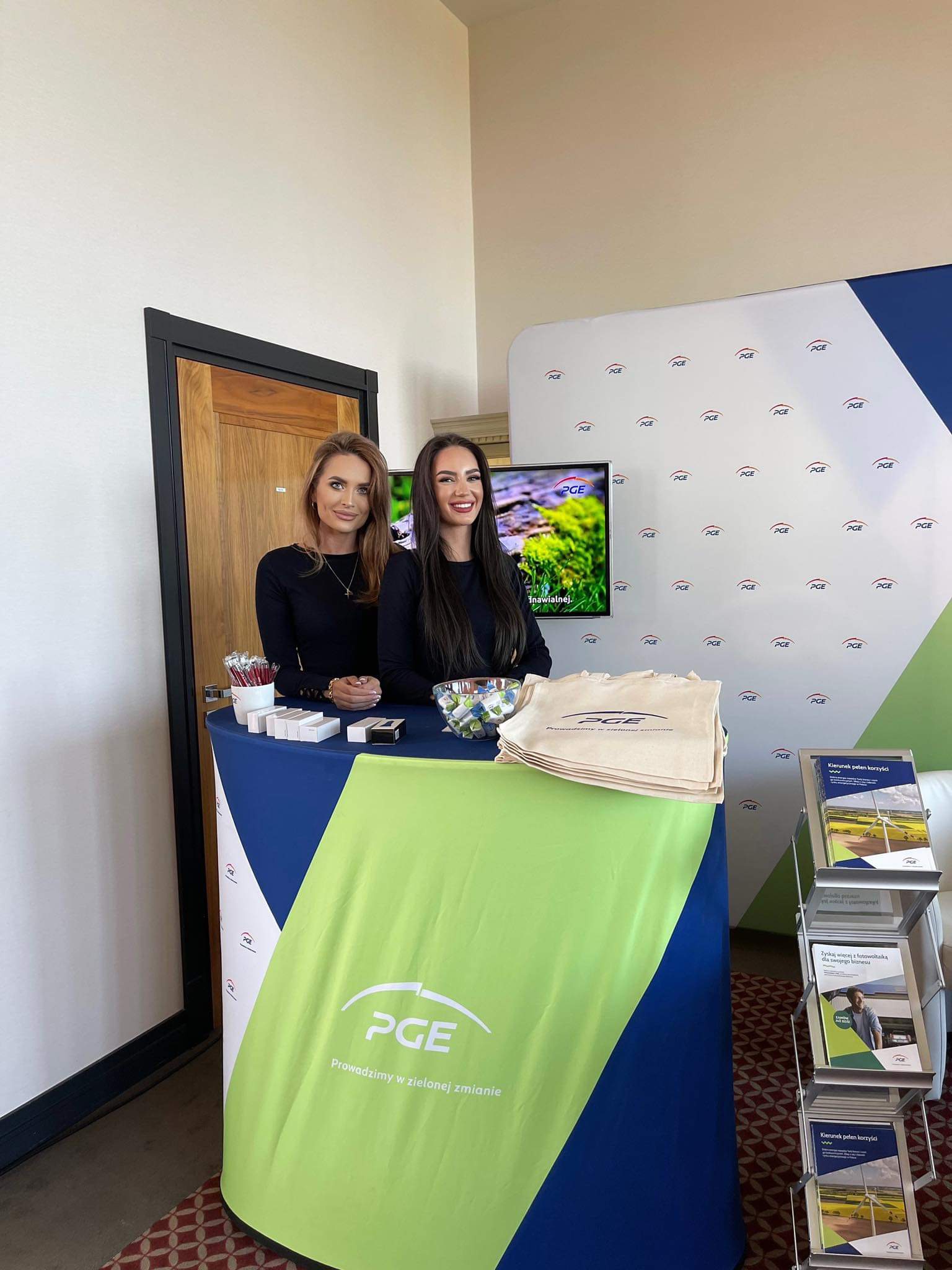 Witanie gości i tworzenie pierwszego wrażenia: Hostessy witają odwiedzających z uśmiechem, tworząc atmosferę gościnności i profesjonalizmu.